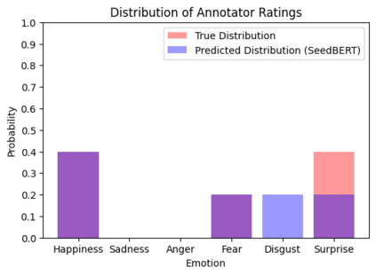 翻译:许多机器学习任务 -- -- 特别是在感官计算中 -- -- 本质上是主观的。当被要求对面部表达方式进行分类或评定一个人的吸引力时,人类可能会相互分歧,而没有任何单一答案可能客观正确。然而,机器学习数据集通常对每个样本只有一个“地面真相”标签,因此,在这些标签上培训的模型在主观性质的任务上可能无法很好地发挥作用。虽然允许模型从个别评分者评分中学习,但大多数数据集并不为每个样本提供说明性特定标签。为了解决这个问题,我们建议SeedBERT, 一种从单一标签中恢复说明性评级分布的方法,通过引导预先训练的模型处理不同部分的投入。我们的人类评估表明,SeedBERT的注意机制与人类对说明性差异的来源是一致的。此外,在我们使用大型语言模型进行的经验评估中,SeedBERTRT在下游主观任务上的表现与标准的深层次学习模型和明确说明意见分歧的其他当前模型相比,都取得了很大的进步。