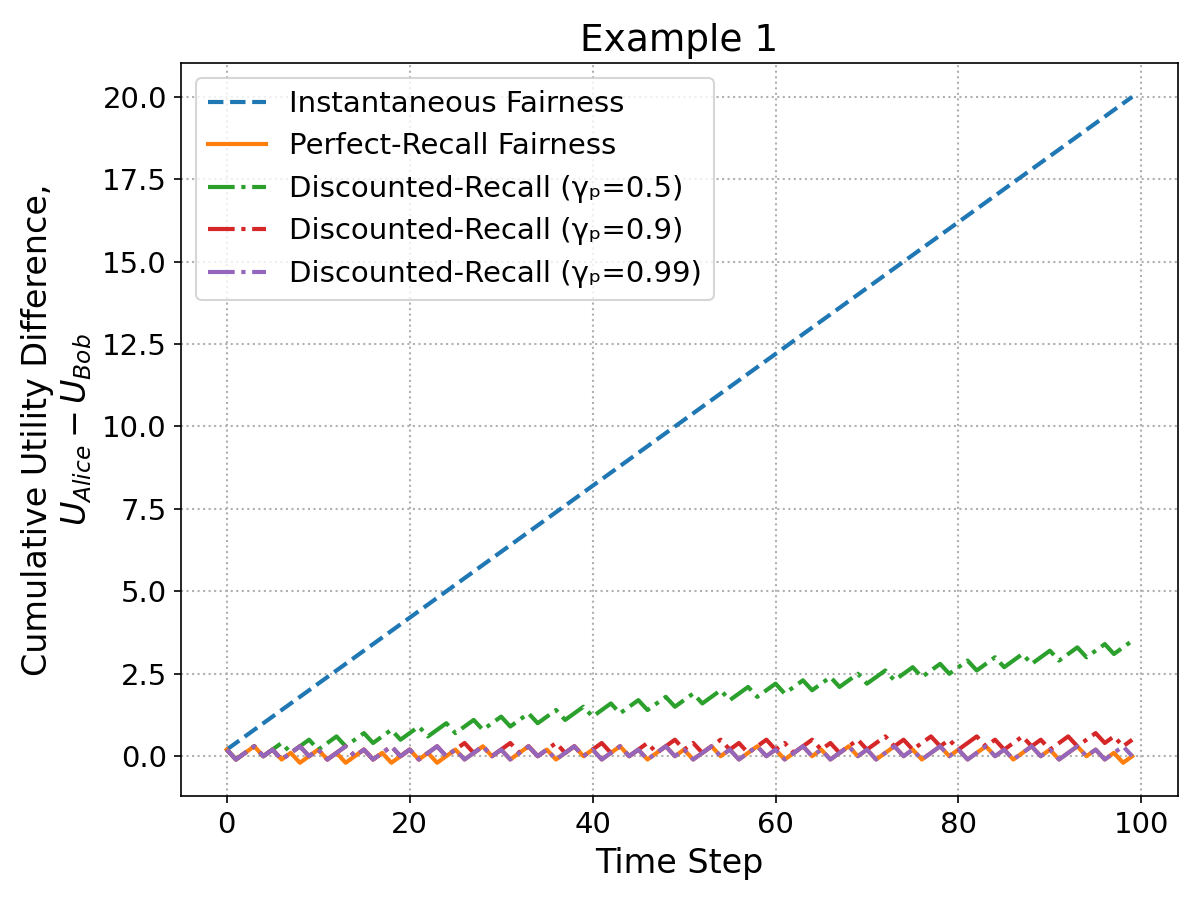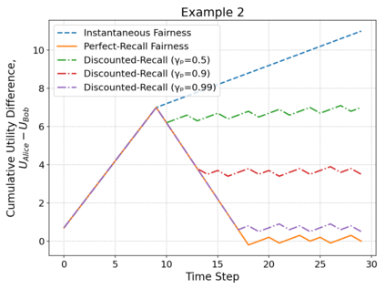 Dynamic resource allocation in multi-agent settings often requires balancing efficiency with fairness over time--a challenge inadequately addressed by conventional, myopic fairness measures. Motivated by behavioral insights that human judgments of fairness evolve with temporal distance, we introduce a novel framework for temporal fairness that incorporates past-discounting mechanisms. By applying a tunable discount factor to historical utilities, our approach interpolates between instantaneous and perfect-recall fairness, thereby capturing both immediate outcomes and long-term equity considerations. Beyond aligning more closely with human perceptions of fairness, this past-discounting method ensures that the augmented state space remains bounded, significantly improving computational tractability in sequential decision-making settings. We detail the formulation of discounted-recall fairness in both additive and averaged utility contexts, illustrate its benefits through practical examples, and discuss its implications for designing balanced, scalable resource allocation strategies.