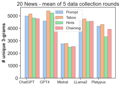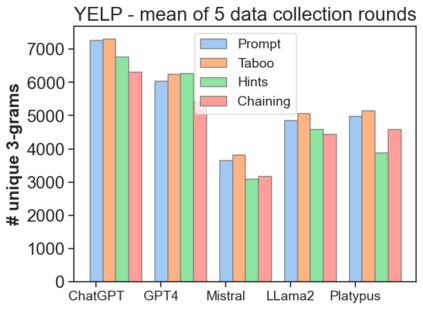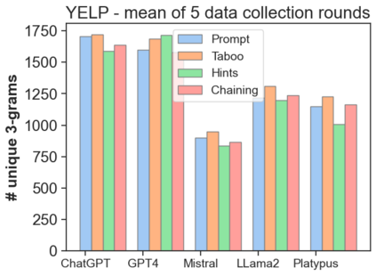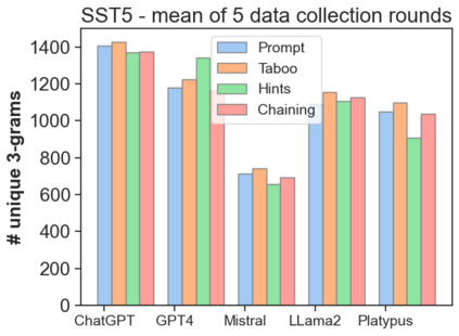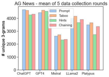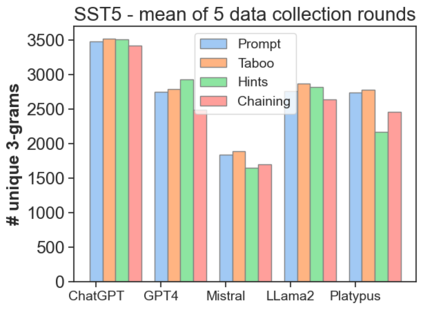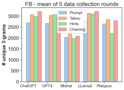 The latest generative large language models (LLMs) have found their application in data augmentation tasks, where small numbers of text samples are LLM-paraphrased and then used to fine-tune the model. However, more research is needed to assess how different prompts, seed data selection strategies, filtering methods, or model settings affect the quality of paraphrased data (and downstream models). In this study, we investigate three text diversity incentive methods well established in crowdsourcing: taboo words, hints by previous outlier solutions, and chaining on previous outlier solutions. Using these incentive methods as part of instructions to LLMs augmenting text datasets, we measure their effects on generated texts' lexical diversity and downstream model performance. We compare the effects over 5 different LLMs and 6 datasets. We show that diversity is most increased by taboo words, while downstream model performance is highest when previously created paraphrases are used as hints.