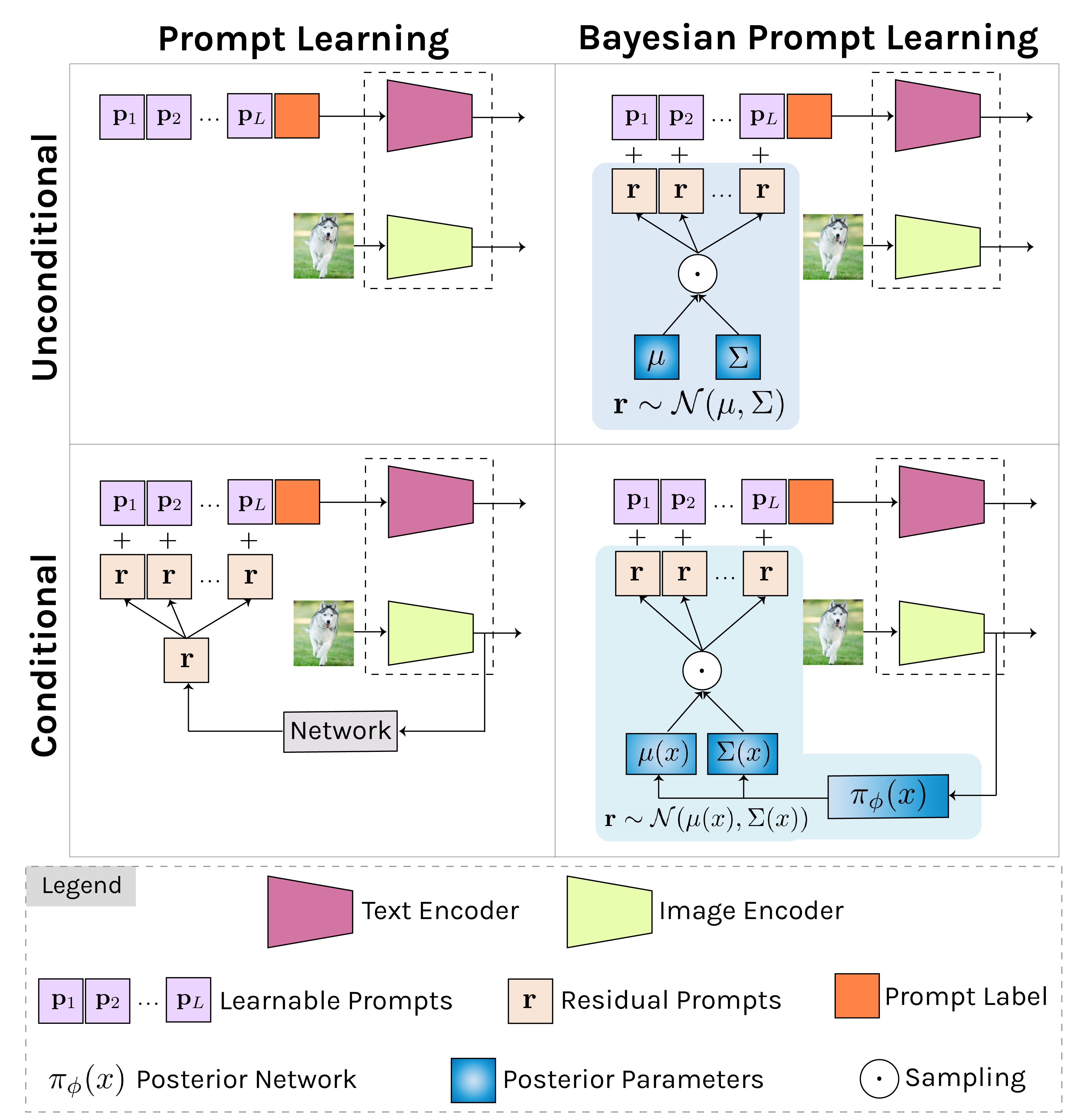 翻译:基础图像语言模型由于通过迅速学习有效地适应下游任务而引起了相当大的兴趣。 快速学习将部分语言模型输入视为可训练的,同时冻结其余部分,并优化了经验风险最小化目标。 然而,据知,经验风险最小化会因分布性转移而受到影响,这种转移会损害一般的传播性,在培训期间会感知。 通过利用巴耶斯方法的正规化能力,我们从巴伊西亚角度将迅速学习设定为快速学习,并把它设计成一个变异推论问题。我们的方法规范了快速空间,减少对已见快的快感的过度适应,并改进了对看不见提示的快速普及。我们的框架是通过以概率化的方式模拟输入快速空间来实施的,作为一种事先的分布,使我们的建议与无条件或有条件于图像的迅速学习方法相匹配。 我们从15个基准上证明,巴伊西亚的快速学习对及时空间提供了适当的覆盖,防止学习欺骗性特征,并利用可转移的变异性特征。 其结果是,更全面地概括了无形的快感,甚至跨越不同的数据集和领域。</s>