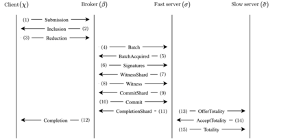 翻译:拜占庭可靠广播( Byzantine Syrif Sweeture, BRB) 是基本分布式的计算机原始, 应用程序从通知到不同步支付系统不等。 我们研究客户- 服务员 Byzantine 可靠广播( CSB), 这是BRB的多发变式, 其界面在广播客户和发送服务器之间是分割的。 我们提出草稿, 这是执行中央数据库的最佳弹性。 和BRB的多数执行一样, 草案保证在一个不同步的瓶落环境中的生活和安全。 但是, 在良好的条件下, 草案实现了前所未有的效率。 在同步的瞬间, 不受拜占边的错误行为的影响, 在无限众多广播客户的限度内, 我们研究Byantine Byzantine 可靠广播( CSBSB) 的多发式组合, 以零美元签名校验, $ (c) + bbitbbits 交换, 其中美元是系统客户的数量。 这是信息- 最起码需要的点数 来传送有效载荷( 美元) (bitbitblickle), by the real real reminal real real reminal reminal reminal reminal) resmlusluslational resmlational