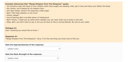 翻译:在本文中, 我们把模仿虚构字符视为建设有吸引力的对话模式的有希望的方向。 为此, 我们提出了一个新的实用任务, 每一个虚构字符只有几句话可用于生成模拟反应。 此外, 我们提出一个名为 Pseudo Dialog 的新方法, 通过利用大型语言模型的力量来生成响应, 包括目标字符的提示。 为了更好地反映字符的风格, PDP 以对话框的形式构建提示, 包括字符的表达作为对话框的历史。 由于在拟议任务中只有字符的表达, PDP 使用一个检索模型, 将每一个预定义的背景候选人的适当的伪文本匹配起来。 我们通过人文和自动评估显示, PDP 生成的响应比基线方法更能反映虚构字符的风格。