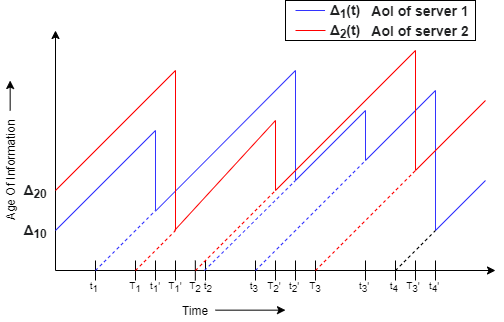 翻译:考虑不同服务器的最佳控制问题,以尽量减少信息的平均年龄( AoI) 。 每一个服务器都保留一个单独的队列, 到达系统的每包都随机选择到一个服务器。 假设Poisson到达和指数分布的服务时间, 我们首先得出两个不同服务器的平均 AoI 的确切表达方式。 其次, 要解决最佳平均 AoI, 得出一个近似, 称为大致AoI, 这对多服务器系统也有用 。 我们显示, 对于每个服务器的最理想的大约 AoI, 每个服务器的服务器利用率( 到达率和服务率比率)应该与用单一服务器队列的最佳服务器利用率相同。 对于两个相同的服务器, 显示平均 AoI 大约是单个服务器的平均 AoI 的5/8 倍。 此外, 平均 AoI 显示, 随着系统增加服务器, 显示平均 AoI 会大大降低 。