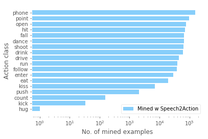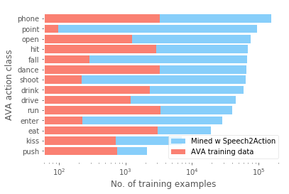 翻译:仅从对话中可以猜测人类的行为吗? 在这项工作中,我们调查电影中口头言词和行动之间的联系。 我们注意到电影剧本描述动作,包含人物的言语,因此可以在没有额外监督的情况下用于学习这种关联性。我们在一千多部电影剧本上对基于BERT的Speople2Action分类员进行了培训,以预测转录演讲部分的行动标签。然后,我们将这个模型应用到一个大型未贴标签的电影集(288K电影中的188M 语音片段)的演讲部分。我们利用这一模型的预测,我们获得了800多段视频片段的微弱动作标签。通过这些视频剪辑的培训,我们展示了在标准行动识别基准上的高级行动识别表现,而没有使用单一的手动标记动作示例。