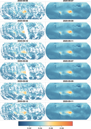 翻译:卫星图象时间序列中的大量空白往往使深层学习模型的应用复杂化,例如用于时空建模的进化神经网络等深层学习模型的应用复杂化。根据计算机图像成像图的计算机视觉先前工作,本文件展示了三维空间部分演化如何可以用作神经网络中的层以填补卫星图像时间序列中的空白。为了评估这一方法,我们应用了一个类似U-Net的模型,用于半全球一氧化碳观测的不完整图像时间序列。预测错误可与两种经过考虑的统计方法相比,而预测的计算时间可更快地达到三个数量级,使该方法适用于处理大量卫星数据。部分演化可以作为其他类型的神经网络的层而增加,使之相对容易与现有的深层学习模型融合。然而,这一方法并不量化预测错误,需要进一步研究才能理解和改进模型的可转移性。可以将空间部分演化和U-Net的模型作为开放源软件使用。