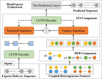 The prediction of express delivery sequence, i.e., modeling and estimating the volumes of daily incoming and outgoing parcels for delivery, is critical for online business, logistics, and positive customer experience, and specifically for resource allocation optimization and promotional activity arrangement. A precise estimate of consumer delivery requests has to involve sequential factors such as shopping behaviors, weather conditions, events, business campaigns, and their couplings. Besides, conventional sequence prediction assumes a stable sequence evolution, failing to address complex nonlinear sequences and various feature effects in the above multi-source data. Although deep networks and attention mechanisms demonstrate the potential of complex sequence modeling, extant networks ignore the heterogeneous and coupling situation between features and sequences, resulting in weak prediction accuracy. To address these issues, we propose DeepExpress - a deep-learning based express delivery sequence prediction model, which extends the classic seq2seq framework to learning complex coupling between sequence and features. DeepExpress leverages an express delivery seq2seq learning, a carefully-designed heterogeneous feature representation, and a novel joint training attention mechanism to adaptively map heterogeneous data, and capture sequence-feature coupling for precise estimation. Experimental results on real-world data demonstrate that the proposed method outperforms both shallow and deep baseline models.