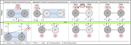 Deep reinforcement learning (DRL) has seen remarkable success in the control of single robots. However, applying DRL to robot swarms presents significant challenges. A critical challenge is non-stationarity, which occurs when two or more robots update individual or shared policies concurrently, thereby engaging in an interdependent training process with no guarantees of convergence. Circumventing non-stationarity typically involves training the robots with global information about other agents' states and/or actions. In contrast, in this paper we explore how to remove the need for global information. We pose our problem as a Partially Observable Markov Decision Process, due to the absence of global knowledge on other agents. Using collective transport as a testbed scenario, we study two approaches to multi-agent training. In the first, the robots exchange no messages, and are trained to rely on implicit communication through push-and-pull on the object to transport. In the second approach, we introduce Global State Prediction (GSP), a network trained to forma a belief over the swarm as a whole and predict its future states. We provide a comprehensive study over four well-known deep reinforcement learning algorithms in environments with obstacles, measuring performance as the successful transport of the object to the goal within a desired time-frame. Through an ablation study, we show that including GSP boosts performance and increases robustness when compared with methods that use global knowledge.