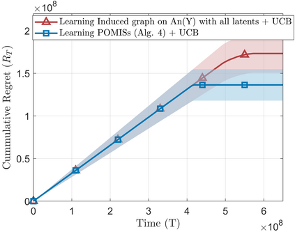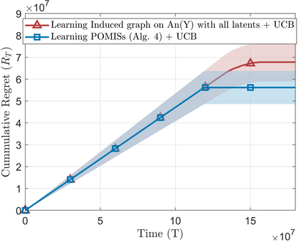 Causal knowledge about the relationships among decision variables and a reward variable in a bandit setting can accelerate the learning of an optimal decision. Current works often assume the causal graph is known, which may not always be available a priori. Motivated by this challenge, we focus on the causal bandit problem in scenarios where the underlying causal graph is unknown and may include latent confounders. While intervention on the parents of the reward node is optimal in the absence of latent confounders, this is not necessarily the case in general. Instead, one must consider a set of possibly optimal arms/interventions, each being a special subset of the ancestors of the reward node, making causal discovery beyond the parents of the reward node essential. For regret minimization, we identify that discovering the full causal structure is unnecessary; however, no existing work provides the necessary and sufficient components of the causal graph. We formally characterize the set of necessary and sufficient latent confounders one needs to detect or learn to ensure that all possibly optimal arms are identified correctly. We also propose a randomized algorithm for learning the causal graph with a limited number of samples, providing a sample complexity guarantee for any desired confidence level. In the causal bandit setup, we propose a two-stage approach. In the first stage, we learn the induced subgraph on ancestors of the reward, along with a necessary and sufficient subset of latent confounders, to construct the set of possibly optimal arms. The regret incurred during this phase scales polynomially with respect to the number of nodes in the causal graph. The second phase involves the application of a standard bandit algorithm, such as the UCB algorithm. We also establish a regret bound for our two-phase approach, which is sublinear in the number of rounds.