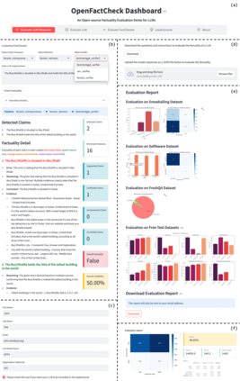The increased use of large language models (LLMs) across a variety of real-world applications calls for automatic tools to check the factual accuracy of their outputs, as LLMs often hallucinate. This is difficult as it requires assessing the factuality of free-form open-domain responses. While there has been a lot of research on this topic, different papers use different evaluation benchmarks and measures, which makes them hard to compare and hampers future progress. To mitigate these issues, we developed OpenFactCheck, a unified framework, with three modules: (i) RESPONSEEVAL, which allows users to easily customize an automatic fact-checking system and to assess the factuality of all claims in an input document using that system, (ii) LLMEVAL, which assesses the overall factuality of an LLM, and (iii) CHECKEREVAL, a module to evaluate automatic fact-checking systems. OpenFactCheck is open-sourced (https://github.com/mbzuai-nlp/openfactcheck) and publicly released as a Python library (https://pypi.org/project/openfactcheck/) and also as a web service (http://app.openfactcheck.com). A video describing the system is available at https://youtu.be/-i9VKL0HleI.