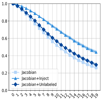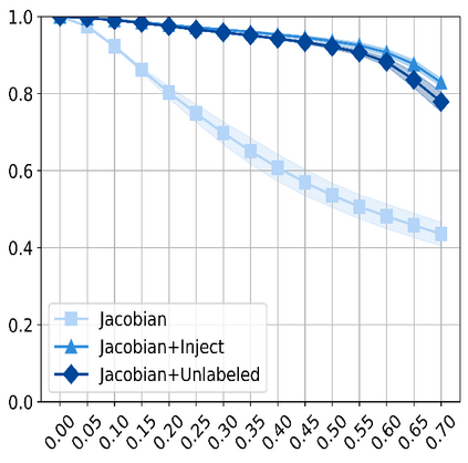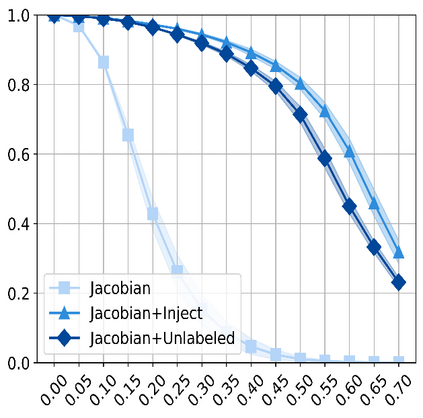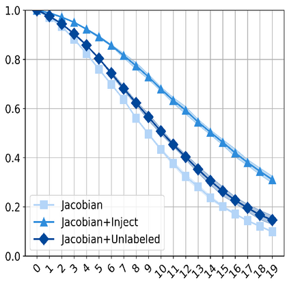 翻译:尽管提出了许多旨在为深层次学习(DL)模型提供稳健性的算法,但DL模型仍然容易受到对抗性攻击。我们假设DL模型的对抗性脆弱性来自两个因素。第一个因素是数据宽度,即在高维输入数据空间,存在数据分布支持之外的大区域。第二个因素是DL模型中存在许多冗余参数。由于这些因素,不同的模型能够产生不同的决定界限,且具有可比的高对称预测准确性。在数据分布支持的外部空间中,决定界限的外表并不影响模型的预测准确性。然而,这在模型的对抗性强度方面有很大的差别。我们假设,在数据分布支持方面,理想的决定界限是尽可能的。在本文件中,我们开发一个培训框架,如果DL模型能够从更熟悉的等级分布模型中学习这样的决定界限,从数据分布点本身即可看出。在培训期间,利用不贴贴标签的模型进行模拟的ROL/Rialder学习, 使用经过训练的模型进行我们所训练的稳健健健健健的模型,我们用经过训练的模型进行数据分布的模型,我们所测量的模型,我们用经过训练的模型,我们用经过训练的模型进行这种训练的模型的模型,通过训练的校正标定式的模型来测量的校正的校正的校正的校正的校正的校正的校正的校正的校正的校正的校正的校正的模型, 。