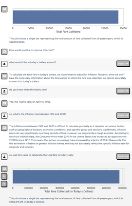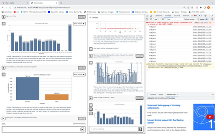 Generative Large Language Models (LLMs) show potential in data analysis, yet their full capabilities remain uncharted. Our work explores the capabilities of LLMs for creating and refining visualizations via conversational interfaces. We used an LLM to conduct a re-analysis of a prior Wizard-of-Oz study examining the use of chatbots for conducting visual analysis. We surfaced the strengths and weaknesses of LLM-driven analytic chatbots, finding that they fell short in supporting progressive visualization refinements. From these findings, we developed AI Threads, a multi-threaded analytic chatbot that enables analysts to proactively manage conversational context and improve the efficacy of its outputs. We evaluate its usability through a crowdsourced study (n=40) and in-depth interviews with expert analysts (n=10). We further demonstrate the capabilities of AI Threads on a dataset outside the LLM's training corpus. Our findings show the potential of LLMs while also surfacing challenges and fruitful avenues for future research.