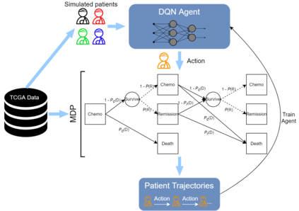 翻译:尽管其他癌症的存活率有所改善,但上腺卵巢癌患者的预测仍然令人沮丧;治疗涉及多种化疗线,经过一线治疗后,治疗变得日益多样化;用现实世界结果数据加强学习,有可能确定新的治疗战略,改善总体生存状况;我们设计一个强化学习环境,以模拟上腺卵巢癌治疗轨迹,并利用免费强化学习模型,调查模拟病人的治疗方案。
