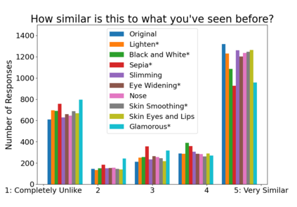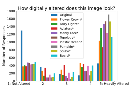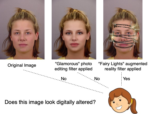 翻译:强化现实和其他照片编辑过滤器是用来修改图像的流行方法,特别是脸部图像,在网上张贴。考虑到人类面部感知在社会交流中的重要作用,在网上接触越来越多的修改面孔如何影响人类面部感?在本文中,我们介绍了六次调查的结果,这些调查的目的是衡量对不同面部过滤器的熟悉程度,用不同面部过滤器编辑面部的奇特性,以及辨别图像是否被过滤的能力。我们的结果表明,脸部通过照片编辑过滤器过滤,改变图像的颜色,修改面部结构,或增加面部美化,这些过滤器往往被认为与未修改面部面部相类似;然而,通过强化的现实过滤器(\ textit{i.e.}覆盖数字物体的过滤器)的过滤结果如何影响人类面部面部感觉与未修改面部面部的熟悉程度不同。我们还发现,根据不同的调查问题表达方式,对面部感知因过滤图像的流行而变化是噪音的检测。更好地了解面部感知觉的转变会帮助我们建立更负责任的在线空间,特别是经过训练的心理识别模型。</s>