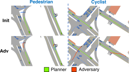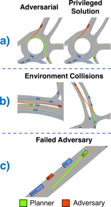 翻译:为了有用,这些情景必须是现实的,具有挑战性,但并非不可能安全地通过。在这项工作中,我们引入了一种自动产生具有挑战性的情景的方法,使某个规划者产生不可取的行为,如碰撞。为了保持情景的可信度,关键的想法是以图表为基础的条件VAE的形式利用交通运动的学习模型。情景生成是作为这一交通模式潜在空间的一种优化,通过对初始真实世界场景进行渗透,产生与某个规划者相撞的轨迹。随后的优化用于寻找“解决方案”来改进特定的规划者。进一步分析基于碰撞类型产生的情景。我们攻击两个规划者,并表明STIVE成功地在两种情况下都产生了现实的、具有挑战性的情景。我们进一步“关闭循环”并使用这些情景来优化一个基于规则的规划者的超参数。