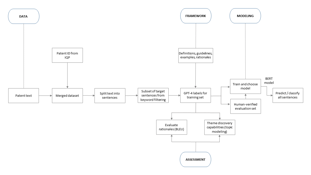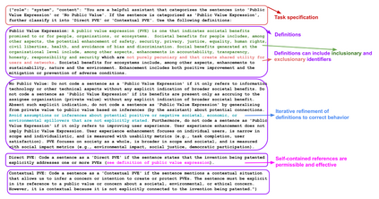 Labeling data is essential for training text classifiers but is often difficult to accomplish accurately, especially for complex and abstract concepts. Seeking an improved method, this paper employs a novel approach using a generative language model (GPT-4) to produce labels and rationales for large-scale text analysis. We apply this approach to the task of discovering public value expressions in US AI patents. We collect a database comprising 154,934 patent documents using an advanced Boolean query submitted to InnovationQ+. The results are merged with full patent text from the USPTO, resulting in 5.4 million sentences. We design a framework for identifying and labeling public value expressions in these AI patent sentences. A prompt for GPT-4 is developed which includes definitions, guidelines, examples, and rationales for text classification. We evaluate the quality of the labels and rationales produced by GPT-4 using BLEU scores and topic modeling and find that they are accurate, diverse, and faithful. These rationales also serve as a chain-of-thought for the model, a transparent mechanism for human verification, and support for human annotators to overcome cognitive limitations. We conclude that GPT-4 achieved a high-level of recognition of public value theory from our framework, which it also uses to discover unseen public value expressions. We use the labels produced by GPT-4 to train BERT-based classifiers and predict sentences on the entire database, achieving high F1 scores for the 3-class (0.85) and 2-class classification (0.91) tasks. We discuss the implications of our approach for conducting large-scale text analyses with complex and abstract concepts and suggest that, with careful framework design and interactive human oversight, generative language models can offer significant advantages in quality and in reduced time and costs for producing labels and rationales.