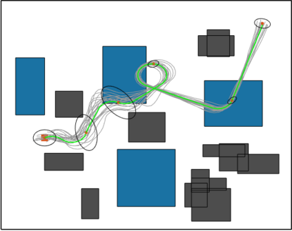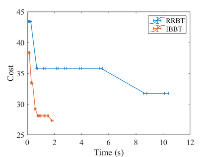 翻译:在此工作中,我们提出了Informed Batch Belief Trees(IBBT)算法,用于不确定性下的运动规划。原始的随机运动规划问题被分成一个确定性运动规划问题和一个图搜索问题。我们使用基于采样的方法(如PRM或RRG)解决确定性规划问题,以构建标准轨迹的图。然后,基于标准轨迹图,计算原始问题的基于成本的启发式函数。最后,通过使用所提出的启发式函数在图上搜索来增长信念树。IBBT在批量状态采样、标准轨迹图构造、启发式计算和图搜索之间交替,以找到信念空间运动计划。IBBT是一个增量算法,逐渐加入采样批次数量时,算法会找到收敛于优化方案的运动计划。IBBT通过在顺序迭代之间重复使用结果而具有效率。信念树搜索是一种有序搜索,由一个基于启发式的指引。我们在不同的规划环境中测试了IBBT。我们的数值研究证实,与之前的类似方法相比,IBBT能够找到非平凡运动计划,并且速度更快。