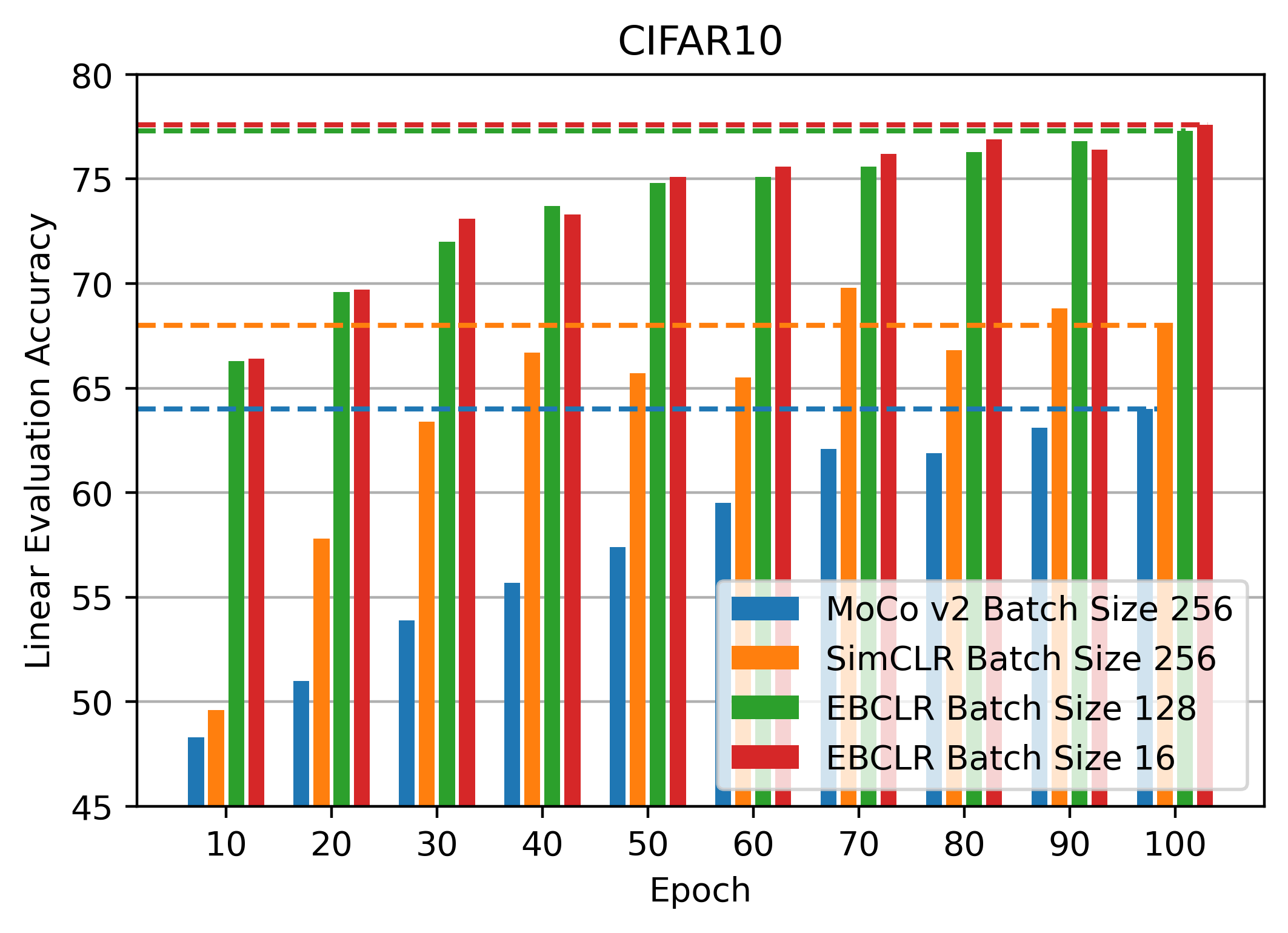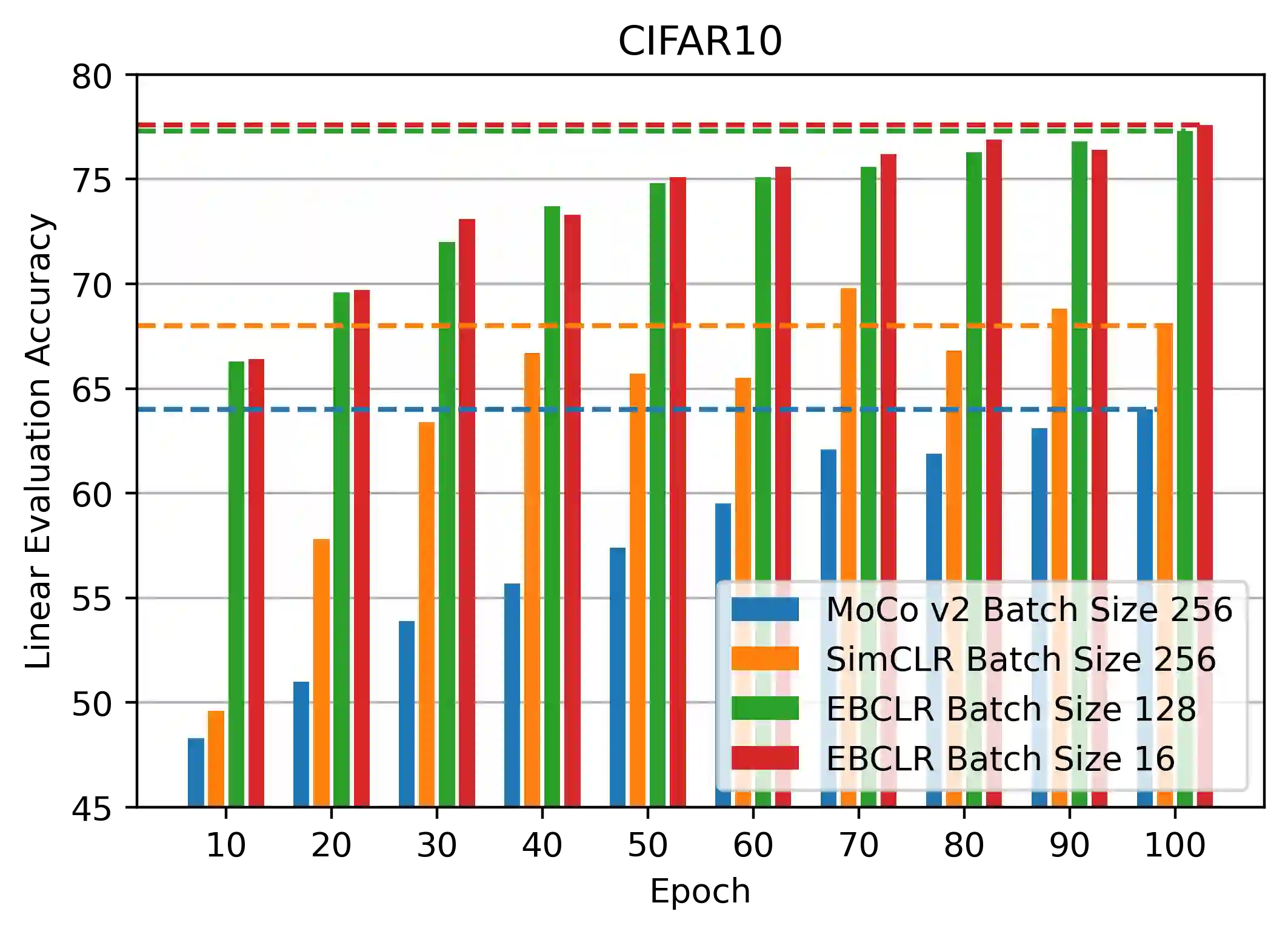 Contrastive learning is a method of learning visual representations by training Deep Neural Networks (DNNs) to increase the similarity between representations of positive pairs and reduce the similarity between representations of negative pairs. However, contrastive methods usually require large datasets with significant number of negative pairs per iteration to achieve reasonable performance on downstream tasks. To address this problem, here we propose Energy-Based Contrastive Learning (EBCLR) that combines contrastive learning with Energy-Based Models (EBMs) and can be theoretically interpreted as learning the joint distribution of positive pairs. Using a novel variant of Stochastic Gradient Langevin Dynamics (SGLD) to accelerate the training of EBCLR, we show that EBCLR is far more sample-efficient than previous self-supervised learning methods. Specifically, EBCLR shows from X4 up to X20 acceleration compared to SimCLR and MoCo v2 in terms of training epochs. Furthermore, in contrast to SimCLR, EBCLR achieves nearly the same performance with 254 negative pairs (batch size 128) and 30 negative pairs (batch size 16) per positive pair, demonstrating the robustness of EBCLR to small number of negative pairs.