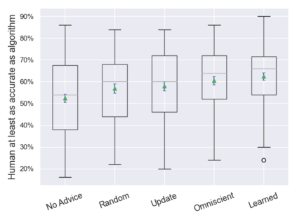 翻译:人工智能(AI)系统越来越多地用于提供咨询,以便利人类决策; 虽然大量的工作探索了如何优化人工智能系统,以提供准确和公平的咨询意见,以及如何向人类决策者提供算法咨询意见,但在这项工作中,我们提出一个不同的基本问题:算法应何时提供咨询?由于目前不断提供算法咨询意见的做法的局限性,我们提议设计人工智能系统,该系统以两面方式与人类用户互动,只有在可能有利于人类作出决定时,才提供咨询; 我们的人工智能系统学会利用过去人类决策为政策提供咨询; 然后,对于新案件,所学的政策利用人的投入,确定算法咨询意见有用的案例,以及人类更能单独作出决定的案例。 我们进行大规模实验,通过使用美国刑事司法系统的数据来评估我们的做法,在审前释放决定方面,我们要求参与者评估被告在被释放后违反释放条件的风险,并用不同的咨询方法提供咨询。 研究结果表明,我们的互动咨询方法利用人类互动咨询方法,确定哪些案例有用,以及哪些案例比较人类独立决定更好作出决定。 我们通过利用美国刑事司法系统的数据来评估我们的方法,评估在审前释放决定上如何应对被告违反其释放条件的风险,并用不同的咨询方法。