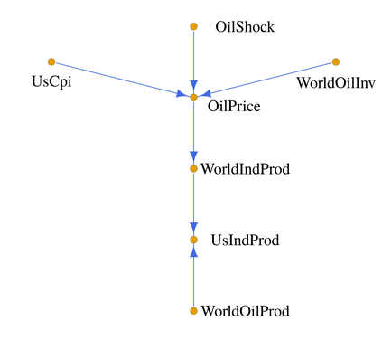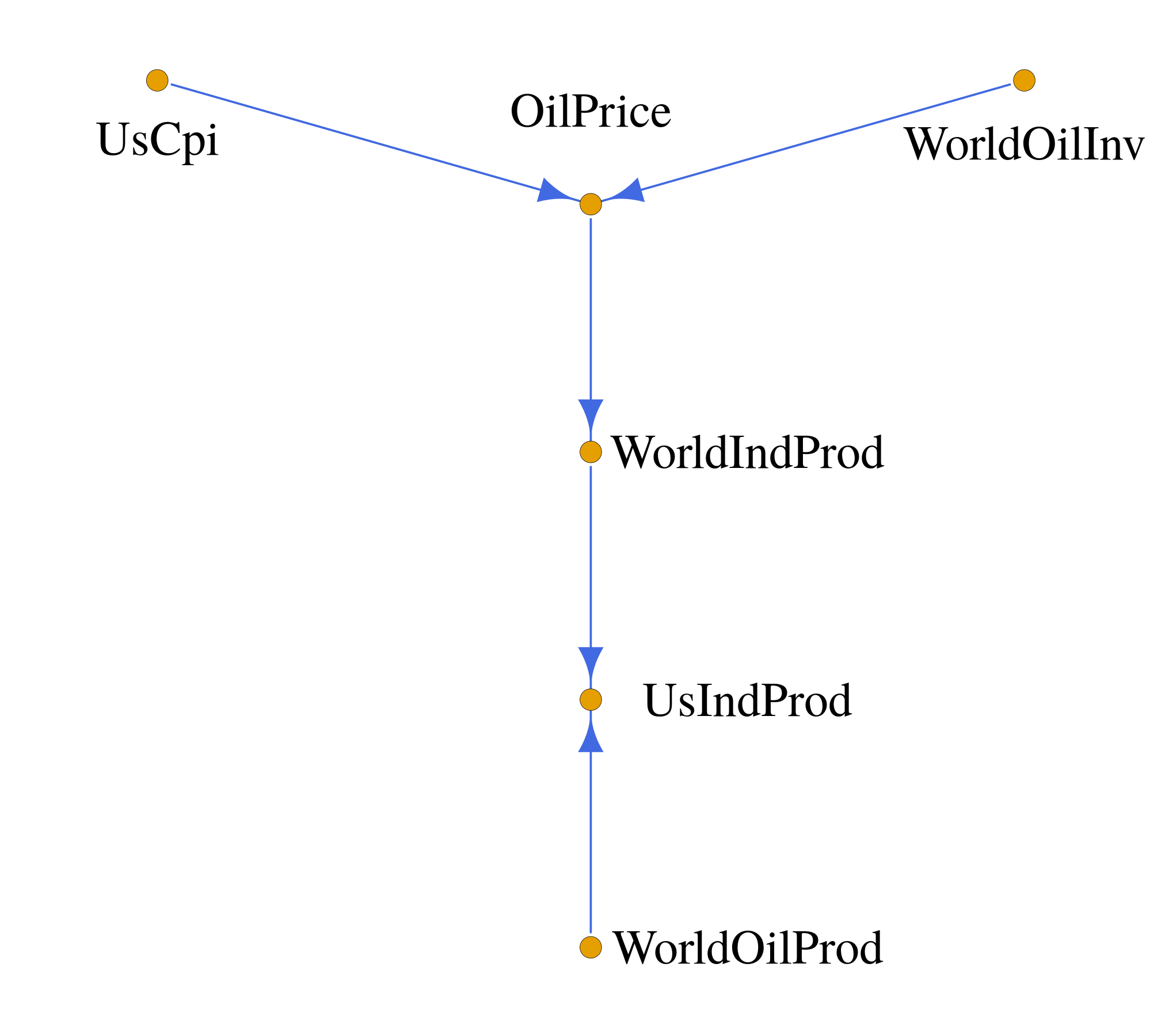 A methodology for high dimensional causal inference in a time series context is introduced. It is assumed that there is a monotonic transformation of the data such that the dynamics of the transformed variables are described by a Gaussian vector autoregressive process. This is tantamount to assume that the dynamics are captured by a Gaussian copula. No knowledge or estimation of the marginal distribution of the data is required. The procedure consistently identifies the parameters that describe the dynamics of the process and the conditional causal relations among the possibly high dimensional variables under sparsity conditions. The methodology allows us to identify such causal relations in the form of a directed acyclic graph. As illustrative applications we consider the impact of supply side oil shocks on the economy, and the causal relations between aggregated variables constructed from the limit order book on four stock constituents of the S&P500.