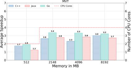 翻译:无服务器计算为多种应用提供了一种高弹性和自动缩放的付费使用模式。由于云端提供者抽象地抽取了大部分基本基础设施,这些服务与黑箱类似。因此,用户可以影响分配给他们职能的资源,但可能不知道他们必须同时从额外分配的虚拟CPU(VCPU)中获利。在本文中,我们分析了AWS Lambda、Google Cloud功能(GCF)和Google Cloud Rrun (GCR)的单一功能和容器实例中平行化的影响。我们注重计算密集工作量,因为它们从平行化中获益很大。此外,我们调查了在无服务器环境中分配的CPU核心和 vCPU数量之间的关系。我们的结果表明,功能/容器中可用的核心数量并不总是等于分配的VCPU的数量。通过平行化服务器工作量,我们观察到AWS Lambda、49 % 全球合作框架和69.8%的全球化学品统一分类的节省成本高达81%。