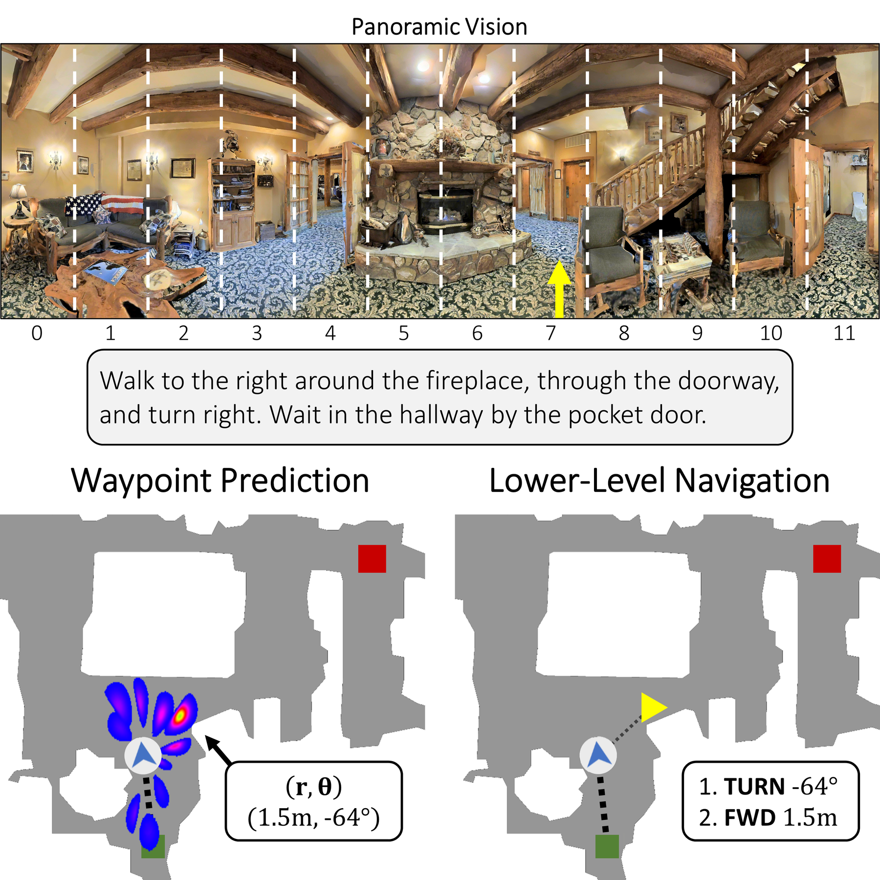 Little inquiry has explicitly addressed the role of action spaces in language-guided visual navigation -- either in terms of its effect on navigation success or the efficiency with which a robotic agent could execute the resulting trajectory. Building on the recently released VLN-CE setting for instruction following in continuous environments, we develop a class of language-conditioned waypoint prediction networks to examine this question. We vary the expressivity of these models to explore a spectrum between low-level actions and continuous waypoint prediction. We measure task performance and estimated execution time on a profiled LoCoBot robot. We find more expressive models result in simpler, faster to execute trajectories, but lower-level actions can achieve better navigation metrics by approximating shortest paths better. Further, our models outperform prior work in VLN-CE and set a new state-of-the-art on the public leaderboard -- increasing success rate by 4% with our best model on this challenging task.