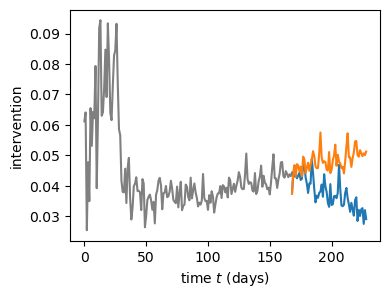 The effect of public health interventions on an epidemic are often estimated by adding the intervention to epidemic models. During the Covid-19 epidemic, numerous papers used such methods for making scenario predictions. The majority of these papers use Bayesian methods to estimate the parameters of the model. In this paper we show how to use frequentist methods for estimating these effects which avoids having to specify prior distributions. We also use model-free shrinkage methods to improve estimation when there are many different geographic regions. This allows us to borrow strength from different regions while still getting confidence intervals with correct coverage and without having to specify a hierarchical model. Throughout, we focus on a semi-mechanistic model which provides a simple, tractable alternative to compartmental methods.