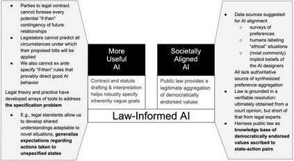 翻译:目前,我们无法以可靠地指导AI行为的方式确定人的目标和社会价值观。法律制定和法律解释形成了一种计算引擎,将不透明的人类价值观转化为可辨认的指令。“法律信息规则”是研究议程,捕捉复杂的计算法律程序,并将其嵌入AI。类似于法律合同的当事方如何无法预见其未来关系的所有潜在应急,立法者无法预测其拟议法案将适用的所有情况,我们无法预言将适用他们的良好AI行为的具体规则。法律理论和实践已经发展了各种工具来解决这些规格问题。例如,法律标准允许人类发展共同的理解,并使它们适应新情况。与法律的更直截了当的使用相比(例如,通过制裁威胁来遏制不良行为),立法者无法预测其未来关系的所有潜在应急情况,以及立法者无法预测其拟议法案将适用的所有情况。我们无法预知,我们通过法律程序产生的数据(法律制定、法定解释、合同起草、法律标准的应用、法律推理等)能够正确地理解这些规格问题。法律标准的法律标准允许人类发展共同的理解,而法律的精确性法律的精确性规则最终用于人类法律的准确性,从而改善对AI的准确性法律的准确性法律的准确性,从而改进了对法律的准确性法律的准确性法律的准确性法律的准确性法律的稳定性,从而改进了法律,从而改进了对法律的稳定性的稳定性,从而改进了人们对性法律的稳定性法律的稳定性法律的稳定性,从而改进了对法律的稳定性的稳定性的稳定性的稳定性的稳定性的稳定性的稳定性的稳定性的稳定性的稳定性的稳定性的稳定性的稳定性的稳定性的稳定性的稳定性的稳定性的稳定性的稳定性的稳定性的稳定性的稳定性的稳定性的稳定性的稳定性的稳定性的稳定性的稳定性的实现。