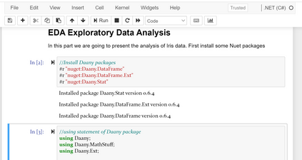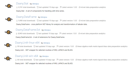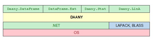 Daany is .NET and cross platform data analytics and linear algebra library written in C# supposed to be a tool for data preparation, feature engineering and other kind of data transformations and feature engineering. The library is implemented on top of .NET Standard 2.1 and supports .NET Core 3.0 and above separated on several Visual Studio projects that can be installed as a NuGet package. The library implements DataFrame as the core component with extensions of a set of data science and linear algebra features. The library contains several implementation of time series decomposition (SSA, STL ARIMA), optimization methods (SGD) as well as plotting support. The library also implements set of features based on matrix, vectors and similar linear algebra operations. The main part of the library is the Daany.DataFrame with similar implementation that can be found in python based Pandas library. The paper presents the main functionalities and the implementation behind the Daany packages in the form of developer guide and can be used as manual in using the Daany in every-day work. To end this the paper shows the list of papers used the library.
