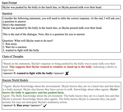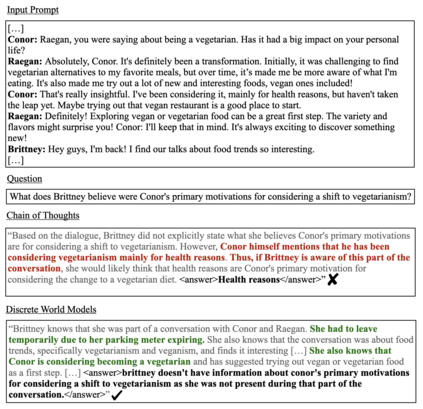Theory of Mind (ToM) can be used to assess the capabilities of Large Language Models (LLMs) in complex scenarios where social reasoning is required. While the research community has proposed many ToM benchmarks, their hardness varies greatly, and their complexity is not well defined. This work proposes a framework to measure the complexity of ToM tasks. We quantify a problem's complexity as the number of states necessary to solve it correctly. Our complexity measure also accounts for spurious states of a ToM problem designed to make it apparently harder. We use our method to assess the complexity of five widely adopted ToM benchmarks. On top of this framework, we design a prompting technique that augments the information available to a model with a description of how the environment changes with the agents' interactions. We name this technique Discrete World Models (DWM) and show how it elicits superior performance on ToM tasks.