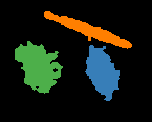 We present a novel clustering algorithm, visClust, that is based on lower dimensional data representations and visual interpretation. Thereto, we design a transformation that allows the data to be represented by a binary integer array enabling the further use of image processing methods to select a partition. Qualitative and quantitative analyses show that the algorithm obtains high accuracy (measured with an adjusted one-sided Rand-Index) and requires low runtime and RAM. We compare the results to 6 state-of-the-art algorithms, confirming the quality of visClust by outperforming in most experiments. Moreover, the algorithm asks for just one obligatory input parameter while allowing optimization via optional parameters. The code is made available on GitHub.