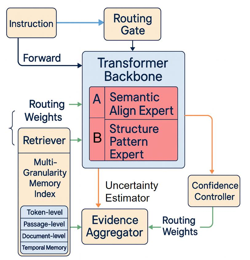 This paper addresses the issues of insufficient coverage, unstable results, and limited reliability in retrieval-augmented generation under complex knowledge environments, and proposes a confidence control method that integrates multi-granularity memory indexing with uncertainty estimation. The method builds a hierarchical memory structure that divides knowledge representations into different levels of granularity, enabling dynamic indexing and retrieval from local details to global context, and thus establishing closer semantic connections between retrieval and generation. On this basis, an uncertainty estimation mechanism is introduced to explicitly constrain and filter low-confidence paths during the generation process, allowing the model to maintain information coverage while effectively suppressing noise and false content. The overall optimization objective consists of generation loss, entropy constraints, and variance regularization, forming a unified confidence control framework. In the experiments, comprehensive sensitivity tests and comparative analyses were designed, covering hyperparameters, environmental conditions, and data structures, to verify the stability and robustness of the proposed method across different scenarios. The results show that the method achieves superior performance over existing models in QA accuracy, retrieval recall, ranking quality, and factual consistency, demonstrating the effectiveness of combining multi-granularity indexing with confidence control. This study not only provides a new technical pathway for retrieval-augmented generation but also offers practical evidence for improving the reliability and controllability of large models in complex contexts.