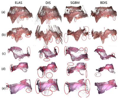 翻译:本文报告了外科图像的CPU级实时立体匹配方法( 10 Hz, 640 * 480 图像, 单核为 i5- 9400 ) 。 提议的方法建在快速“ 强烈反向搜索” 算法上, 该算法估计立体图像的差异。 相重叠的图像补丁( 任意正方形图像段) 根据光度一致性假设对不同比例图像进行校正。 我们提出贝叶西亚框架, 以评价在不同比例上优化补丁差的概率。 此外, 我们引入了空间高斯混合概率分布, 以解决补丁中的像素顺差概率。 校内和合成实验显示, 我们的方法可以处理无纹表面产生的模糊性, 以及Lambertian反射造成的光度不一致性。 我们的巴伊斯方法正确平衡了不同比例上立体图像的补丁的概率。 实验显示, 估计深度比外科情景中的基线法更准确, 外差也更少。