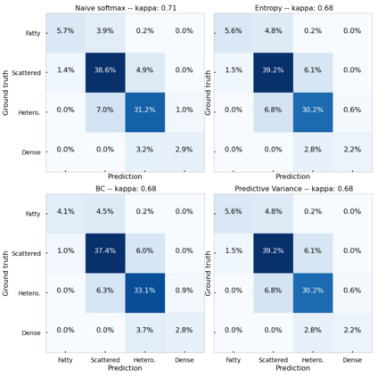 翻译:由于机器学习(ML)继续被纳入影响临床决策的保健系统,需要纳入新的战略,以便有效检测和评价分组差异,确保临床工作流程的问责制和可普遍性,在本文件中,我们探讨如何利用认知不确定性来评价病人人口(种族)和数据采集(扫描)分组的差异,以便评估在33个临床地点收集的108 190个乳房X光片数据集中的乳房密度。我们的结果表明,即使总体性能具有可比性,不确定性量化指标的选择也能够大大加强分组一级。我们希望这一分析能够推动进一步开展工作,研究如何利用不确定性提高临床部署机器学习应用的透明度。