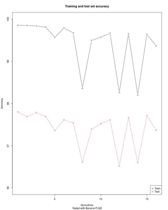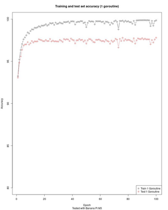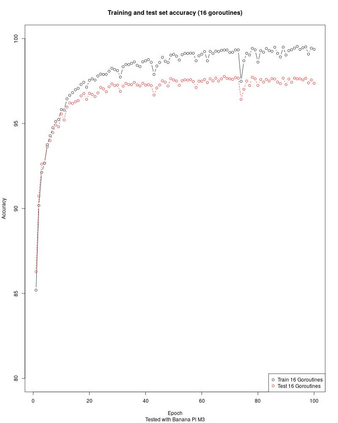 This paper presents a case for exemplar parallelism of neural networks using Go as parallelization framework. Further it is shown that also limited multi-core hardware systems are feasible for these parallelization tasks, as notebooks and single board computer systems. The main question was how much speedup can be generated when using concurrent Go goroutines specifically. A simple concurrent feedforward network for MNIST digit recognition with the programming language Go was created to find the answer. The first findings when using a notebook (Lenovo Yoga 2) showed a speedup of 252% when utilizing 4 goroutines. Testing a single board computer (Banana Pi M3) delivered more convincing results: 320% with 4 goroutines, and 432% with 8 goroutines.