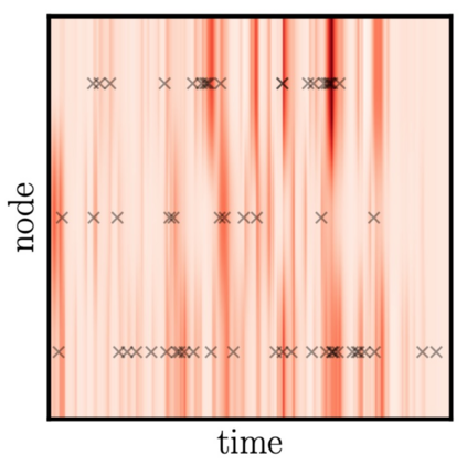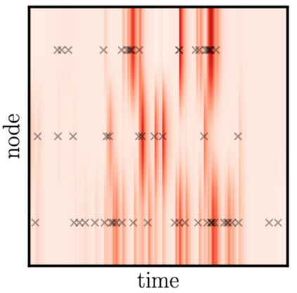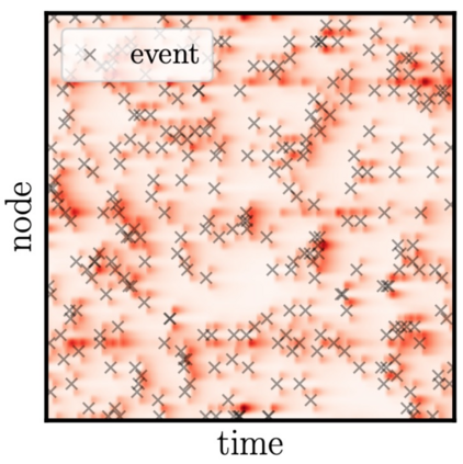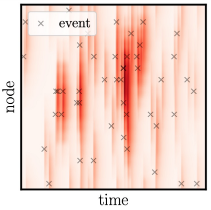 Point process models are widely used for continuous asynchronous event data, where each data point includes time and additional information called "marks", which can be locations, nodes, or event types. This paper presents a novel point process model for discrete event data over graphs, where the event interaction occurs within a latent graph structure. Our model builds upon Hawkes's classic influence kernel-based formulation in the original self-exciting point processes work to capture the influence of historical events on future events' occurrence. The key idea is to represent the influence kernel by Graph Neural Networks (GNN) to capture the underlying graph structure while harvesting the strong representation power of GNNs. Compared with prior works focusing on directly modeling the conditional intensity function using neural networks, our kernel presentation herds the repeated event influence patterns more effectively by combining statistical and deep models, achieving better model estimation/learning efficiency and superior predictive performance. Our work significantly extends the existing deep spatio-temporal kernel for point process data, which is inapplicable to our setting due to the fundamental difference in the nature of the observation space being Euclidean rather than a graph. We present comprehensive experiments on synthetic and real-world data to show the superior performance of the proposed approach against the state-of-the-art in predicting future events and uncovering the relational structure among data.