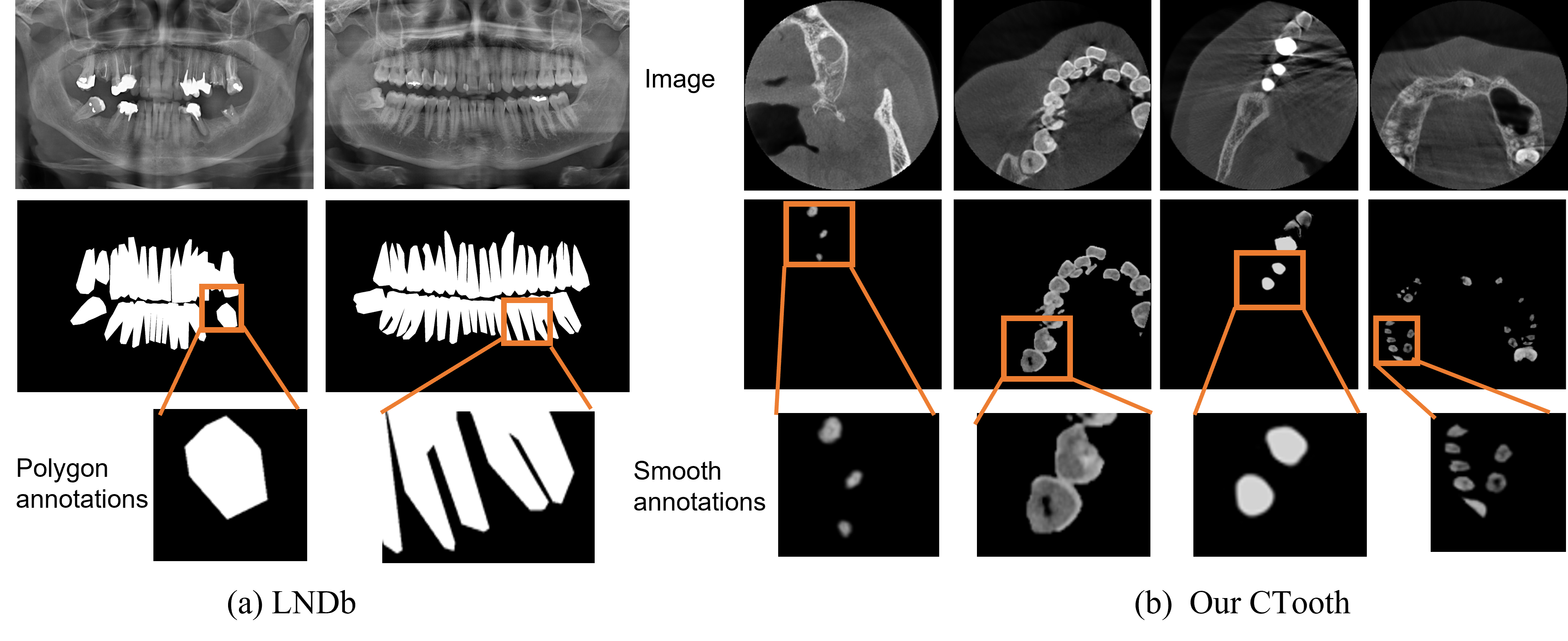 翻译:3D牙分解是计算机辅助牙科诊断和治疗的一个先决条件。 但是, 对所有牙区进行人工分解是主观和耗时的。 最近, 深学习分解方法产生令人信服的结果, 并减少人工注解的努力, 但需要大量的实地真相来进行培训。 据我们所知, 3D分解研究的牙齿数据很少。 本文中, 我们建立一个带有牙金标准的完全注解的锥形针形计算透析数据集CTooth。 这个数据集包含22卷( 7363片), 并配有有经验的放射翻译加注的优美牙标签。 为确保相对均衡的数据抽样分布, 数据差异包含在Ctooth中, 包括缺失的牙齿和牙科修复。 对这一数据集进行了一些最先进的分解方法。 之后, 我们进一步总结并应用一系列基于3D的内径的内径图变异变量来进行分解。 这项工作为牙齿分解任务提供了一个新的基准。 实验证据证明, 3DUT结构对牙区进行精度分析, 3UNet结构的反推导反应模块, 在牙区进行相对来说, 78 Dnet 模 模型中, 也抑制了Slax