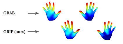 Hands are dexterous and highly versatile manipulators that are central to how humans interact with objects and their environment. Consequently, modeling realistic hand-object interactions, including the subtle motion of individual fingers, is critical for applications in computer graphics, computer vision, and mixed reality. Prior work on capturing and modeling humans interacting with objects in 3D focuses on the body and object motion, often ignoring hand pose. In contrast, we introduce GRIP, a learning-based method that takes, as input, the 3D motion of the body and the object, and synthesizes realistic motion for both hands before, during, and after object interaction. As a preliminary step before synthesizing the hand motion, we first use a network, ANet, to denoise the arm motion. Then, we leverage the spatio-temporal relationship between the body and the object to extract two types of novel temporal interaction cues, and use them in a two-stage inference pipeline to generate the hand motion. In the first stage, we introduce a new approach to enforce motion temporal consistency in the latent space (LTC), and generate consistent interaction motions. In the second stage, GRIP generates refined hand poses to avoid hand-object penetrations. Given sequences of noisy body and object motion, GRIP upgrades them to include hand-object interaction. Quantitative experiments and perceptual studies demonstrate that GRIP outperforms baseline methods and generalizes to unseen objects and motions from different motion-capture datasets.