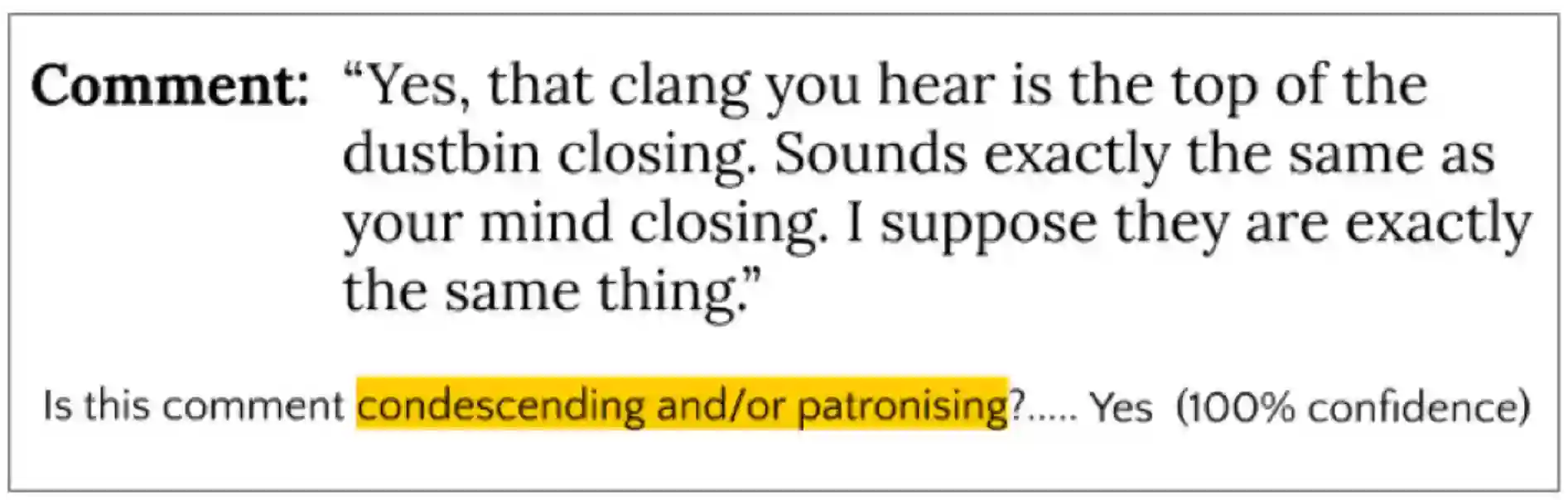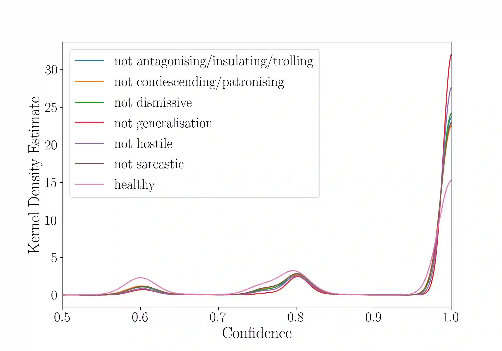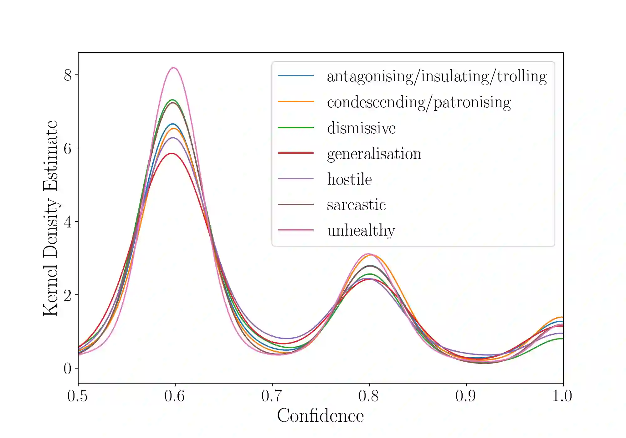 翻译:我们提出了一个由人群工人标注的大约44,000条评论组成的新数据集。 每条评论都标为“健康”或“不健康 ”, 除了六种潜在“不健康”子属性的二进制标签:(1) 敌对;(2) 敌对、侮辱、挑衅或牵引;(3) 鄙视;(4) 任人唯亲或赞助;(5) 讽刺;和/或(6) 不公平的概括。 每条标签都有相关的信任分。 我们认为,需要数据集,使基于“不健康在线对话”的广泛概念的研究成为可能。 我们构建了这种分类,以包括大量有助于不健康在线对话的个人评论。 对于其中一些属性,这是这一规模的第一个可公开获取的数据集。 我们探索数据集的质量, 提供一些简要统计数据和初步模型来说明这些数据的效用, 并强调进一步研究的局限性和方向。