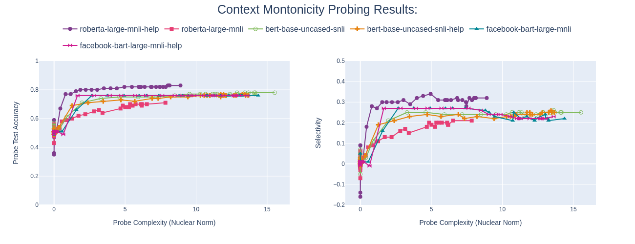 翻译:为了解释神经NLI模型及其推理战略,我们开展了一项系统的测试研究,调查这些模型是否反映了自然逻辑的关键语义特征:单音和概念包容。正确确定向下摩诺因环境中的有效推论是NLI性能的一个已知绊脚石,将否定范围和通用量化指标等语言现象归并起来。为了理解这一困难,我们强调单一性是背景的属性,并审查这些模型在背景嵌入中采集单音信息的程度,而这种嵌入是其决策过程的中间部分。我们借鉴最近推进的Probent范式,比较各种模型中存在的单音特征。我们发现,在流行的NLI模型的表述中,单音信息明显薄弱,这些模型在基准上得分很高。我们注意到,以前根据微调战略对这些模型的改进带来了更强的单调特征,同时提高了其在挑战组合上的性能。