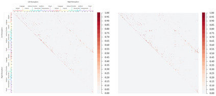 Motivated by the need to model the dependence between regions of interest in functional neuroconnectivity for efficient inference, we propose a new sampling-based Bayesian clustering approach for covariance structures of high-dimensional Gaussian outcomes. The key technique is based on a Dirichlet process that clusters covariance sub-matrices into independent groups of outcomes, thereby naturally inducing sparsity in the whole brain connectivity matrix. A new split-merge algorithm is employed to achieve convergence of the Markov chain that is shown empirically to recover both uniform and Dirichlet partitions with high accuracy. We investigate the empirical performance of the proposed method through extensive simulations. Finally, the proposed approach is used to group regions of interest into functionally independent groups in the Autism Brain Imaging Data Exchange participants with autism spectrum disorder and and co-occurring attention-deficit/hyperactivity disorder.