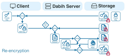 Background: The secure management of sensitive clinical data, particularly human genomics data, has become a critical requirement in modern biomedical research. Although the necessary software and algorithms are readily available, their use by non-IT experts poses significant challenges. Methods: We developed dabih, an open-source web application specifically designed to facilitate user-friendly encrypted data management. dabih enables web-based uploading, storing, sharing, and downloading of sensitive data in any format. Its approach to data security involves a two-stage envelope encryption process. We combine symmetric-key encryption for data and public-key encryption as key encapsulation mechanism. The private key necessary for decrypting the data remains exclusively on the owner's device. Thus, accessing data is impossible without explicit permission from the keyholder. Results: dabih is available open-source on GitHub https://github.com/spang-lab/dabih, as ready to use containers on docker hub and includes a command line interface and a graphical bulk upload tool as pre-built binaries. Documentation is available as part of the web application. Conclusions: dabih enables everyone to use strong cryptography for their data, while being just as simple to use as other, non-encrypted, data storage solutions. All the cryptography occurs seamlessly in the background as users interact with a secure web portal, simply by dragging and dropping files.