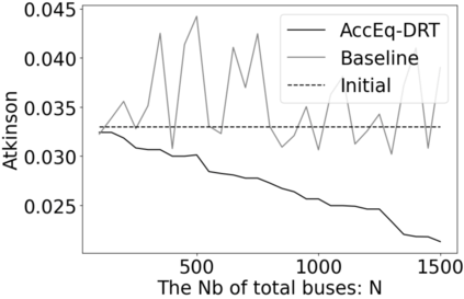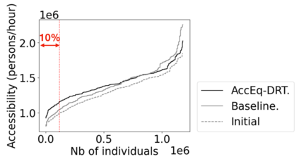 Accessibility measures how well a location is connected to surrounding opportunities. We focus on accessibility provided by Public Transit (PT). There is an evident inequality in the distribution of accessibility between city centers or close to main transportation corridors and suburbs. In the latter, poor PT service leads to a chronic car-dependency. Demand-Responsive Transit (DRT) is better suited for low-density areas than conventional fixed-route PT. However, its potential to tackle accessibility inequality has not yet been exploited. On the contrary, planning DRT without care to inequality (as in the methods proposed so far) can further improve the accessibility gap in urban areas. To the best of our knowledge this paper is the first to propose a DRT planning strategy, which we call AccEq-DRT, aimed at reducing accessibility inequality, while ensuring overall efficiency. To this aim, we combine a graph representation of conventional PT and a Continuous Approximation (CA) model of DRT. The two are combined in the same multi-layer graph, on which we compute accessibility. We then devise a scoring function to estimate the need of each area for an improvement, appropriately weighting population density and accessibility. Finally, we provide a bilevel optimization method, where the upper level is a heuristic to allocate DRT buses, guided by the scoring function, and the lower level performs traffic assignment. Numerical results in a simplified model of Montreal show that inequality, measured with the Atkinson index, is reduced by up to 34\%. Keywords: DRT Public, Transportation, Accessibility, Continuous Approximation, Network Design