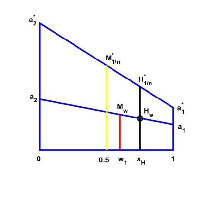 This paper is dedicated to the analysis and detailed study of a procedure to generate both the weighted arithmetic and harmonic means of $n$ positive real numbers. Together with this interpretation, we prove some relevant properties that will allow us to define numerical approximation methods in several dimensions adapted to discontinuities.