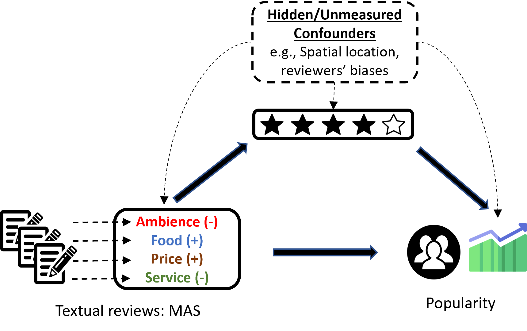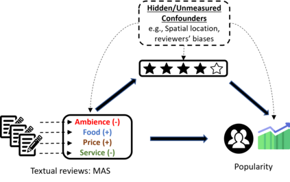 翻译:在线审查体系是许多企业寻求建立品牌和传播其信息的主要手段。先前的研究研究在线审查的效果主要集中于单一数字原因,例如评级或情绪分数。我们争辩说,这种原因概念包含三个关键限制:它们仅仅考虑单一数字原因的影响,忽视文本审查中包含的多种方面 -- -- 例如食品、服务 -- -- 的不同影响;它们假定观察研究中不存在隐藏的混淆者,例如消费者的个人偏好;它们忽视了可能抵消文字审查对商业收入的影响的数字原因的间接影响。因此,我们提出对网上审查的这种单一的、基于原因的影响估计的另一种观点:在隐藏的聚合者面前,我们考虑多层次的文本审查,特别是其对商业收入的总体影响和与数字原因的直接影响 -- -- 评级 -- -- 是调解者。我们借鉴机器学习和因果关系推断的最新进展,共同估计隐藏的聚合者和因果关系效应。我们用现实世界的例子提出实证评价,以讨论区分多种业务影响的重要性和影响。