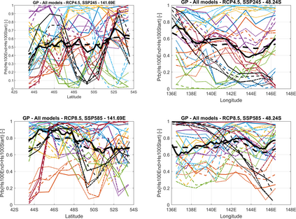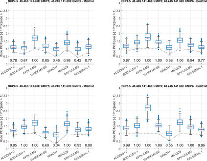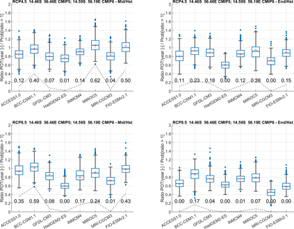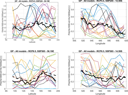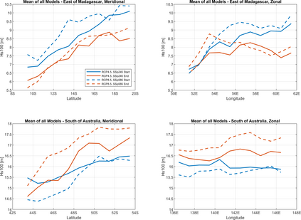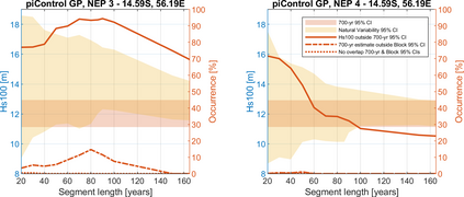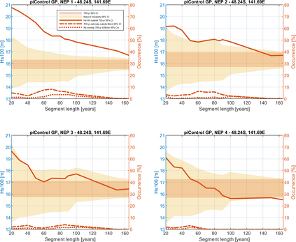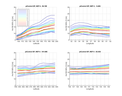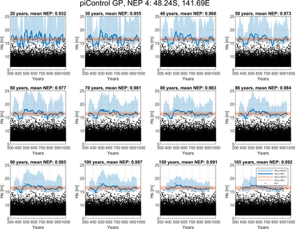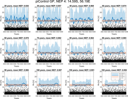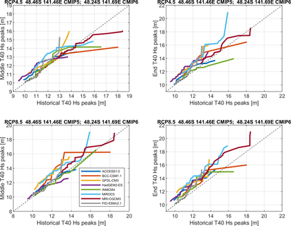 翻译:估计气候对未来海洋风暴严重程度的影响受到巨大的不确定性的困扰,然而,为了安全地设计和运行离岸结构,需要根据现有数据对气候影响作出尽可能最佳的估计。我们探讨长期内重大波高(Hs)100年回报值估计数的变异性,7个具有代表性的CMIP5 GCM和FIO-ESM v2.0 CMIIP6 GCM的WAVEWITCHIII模型产出的变异性,马达加斯加东部和澳大利亚南部各居民区的FIO-ESM v2.0 CMIP6 GCM。但是,利用Bayesian Inference对峰值和区级峰值的不固定极端值分析,提供了作为时间函数的回报值的远值估计;提供了MATLAB软件。不同环流高(GMMS)的回报值估计数和每个居民区的长度和纬度之间有很大差异。这些不确定性的来源往往大于典型的建模选择(例如选择POT的阈值,或BMM的区长长度)。然而,马达加斯加东部的仔细的阈值和块长度是关键,因为那里存在混合的风暴群落人口,所以具有长期的ICP值。
