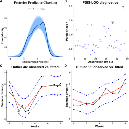 翻译:模拟非线性时间轨迹在许多应用领域具有根本意义,如纵向微生物分析。许多现有方法侧重于估计平均轨迹,但评估个别主体的时间模式往往也具有价值。粗化主要部件分析(SFPCA)是评估非线性轨迹个别变异的有用工具;然而,对真实数据的应用往往需要谨慎的模型选择标准和诊断工具。在这里,我们提议对SFCCA采取巴伊西亚办法,使用户能够使用Pareto-moded 重要性有效留置交叉校验(LOO)进行模型选择,并使用PSIS-LOO的估计形状参数,以及图形模型诊断的外观预测检查。因此,Bayesian采用这种方法,能够将SFCA仔细应用于广泛的纵向数据应用。