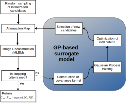 翻译:光衰减和散射是影响SPECT在脑成像应用中的诊断质量的两个主要物理因素。在这项工作中,我们介绍了一种新型的Bayesian优化方法,用于SPECT脑成像中的减速校正(BOAC)。BOC使用先前的模型,对头部几何进行模拟,并利用高性能计算法(HPC)重建减速校正图像,而无需事先从补充的CT扫描中获得解剖信息。BOCAC在SPECT脑成像中显示的是用从数字幻影模拟的噪音和减速的罪理图。用拟议方法获得的图象质量与通过使用适当的图像质量衡量法在不减速的情况下获得的图象质量进行了比较。定量结果显示,BOCC有能力提供与非加速校正的MLEM图像相比,显示更高对比度和较少背景文物的图像。