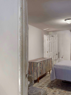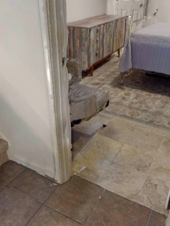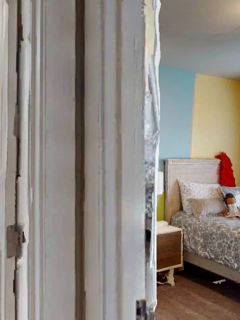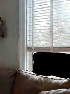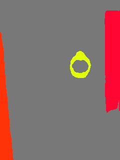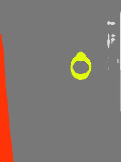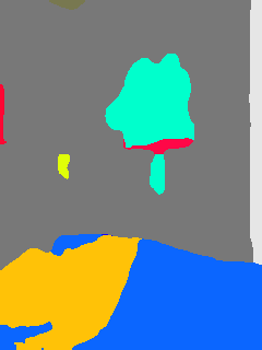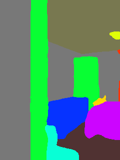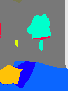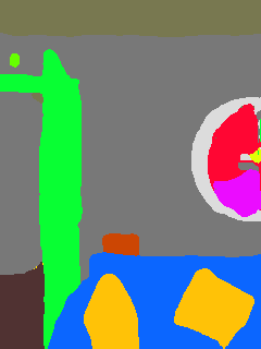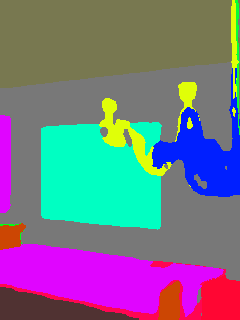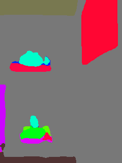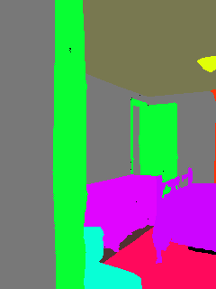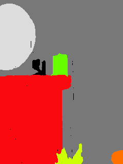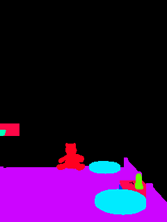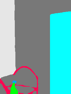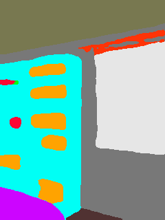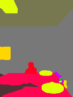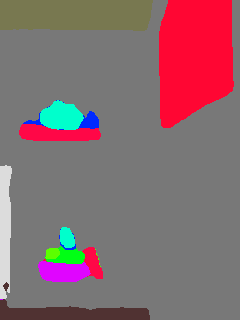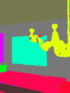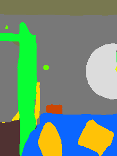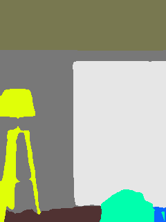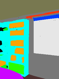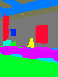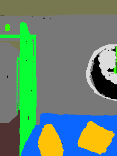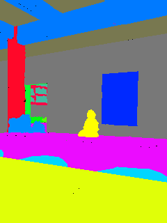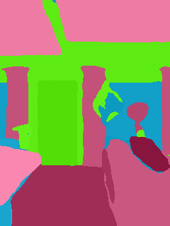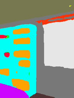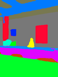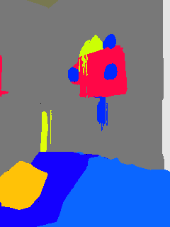 This paper presents an adaptive transformer model named SegmATRon for embodied image semantic segmentation. Its distinctive feature is the adaptation of model weights during inference on several images using a hybrid multicomponent loss function. We studied this model on datasets collected in the photorealistic Habitat and the synthetic AI2-THOR Simulators. We showed that obtaining additional images using the agent's actions in an indoor environment can improve the quality of semantic segmentation. The code of the proposed approach and datasets are publicly available at https://github.com/wingrune/SegmATRon.