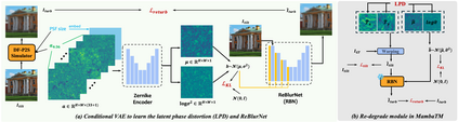 Atmospheric turbulence is a major source of image degradation in long-range imaging systems. Although numerous deep learning-based turbulence mitigation (TM) methods have been proposed, many are slow, memory-hungry, and do not generalize well. In the spatial domain, methods based on convolutional operators have a limited receptive field, so they cannot handle a large spatial dependency required by turbulence. In the temporal domain, methods relying on self-attention can, in theory, leverage the lucky effects of turbulence, but their quadratic complexity makes it difficult to scale to many frames. Traditional recurrent aggregation methods face parallelization challenges. In this paper, we present a new TM method based on two concepts: (1) A turbulence mitigation network based on the Selective State Space Model (MambaTM). MambaTM provides a global receptive field in each layer across spatial and temporal dimensions while maintaining linear computational complexity. (2) Learned Latent Phase Distortion (LPD). LPD guides the state space model. Unlike classical Zernike-based representations of phase distortion, the new LPD map uniquely captures the actual effects of turbulence, significantly improving the model's capability to estimate degradation by reducing the ill-posedness. Our proposed method exceeds current state-of-the-art networks on various synthetic and real-world TM benchmarks with significantly faster inference speed. The code is available at http://github.com/xg416/MambaTM.