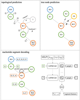 翻译:我们的工作涉及RNA的产生和有针对性的设计,RNA是一种遗传巨分子,可以采用影响其细胞活动和功能的复杂结构。大型和复杂的生物结构的设计促使专门基于图形的深层基因模型技术,这是计算药物发现的一个关键但认识不足的方面。在这项工作中,我们调查代表并产生不同RNA结构模式的原则,并提议一个灵活的框架,以便在一个有意义的潜质空间中联合嵌入和生成这些分子结构及其序列。在对RNA分子结构的深刻理解下,我们最先进的编码和解码方法在分子图和连接树结构结构上运作,整合对RNA结构规律和折叠机制的强烈感性偏向,从而实现所产生RNA结构的高度有效性、稳定性和多样性。此外,我们还设法充分组织RNA分子与蛋白质相互作用的潜在空间,并采用有针对性的优化方法在这种潜在空间中导航所需的新式RNA分子。